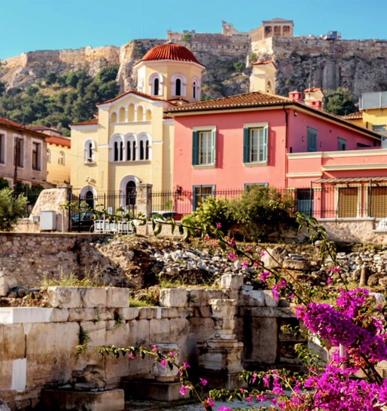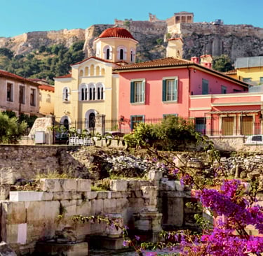 Wandering through Plaka, where every corner feels like a painting. Whitewashed walls, cobalt shutters, and bursts of fuchsia flowers spilling over balconies.