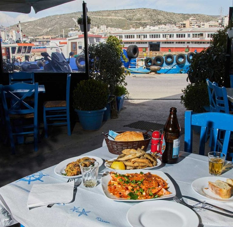 A shaded taverna with checkered tablecloths. Greek salad, grilled octopus, and bread still warm from the oven. The kind of meal that makes you pause between bites just to smile.
