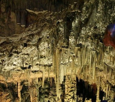 An underwater cave discovered in 1999, containing bones of an extinct elephant species and stunning red stalactites.