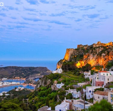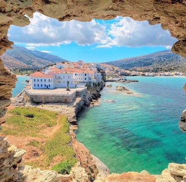 Just two hours from Athens, Andros is a peaceful Cycladic island with waterfall hikes, quiet beaches, and charming villages like Batsi and Chora. It’s also a hidden gem for food lovers—try the froutalia omelet and almond. sweets