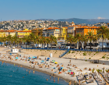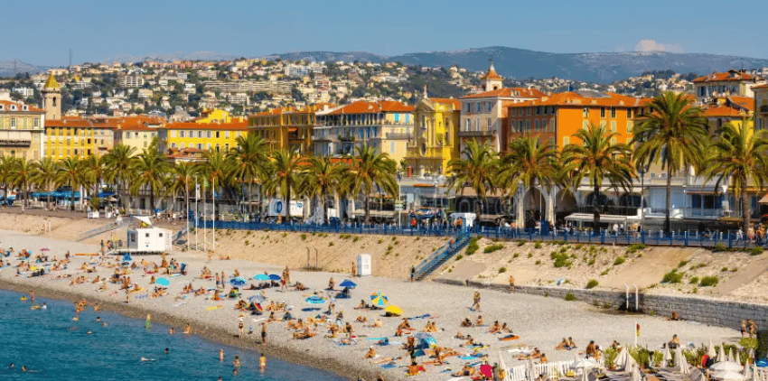 Nice blends Mediterranean beaches with Riviera elegance. Expect busy promenades, crowded beaches, and a mix of culture, shopping, and nightlife—especially during summer holidays.