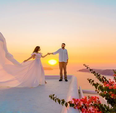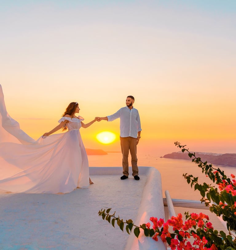 Whitewashed buildings, blue domes, and unforgettable sunsets make Santorini a favorite for destination weddings with stunning views and intimate celebrations.
