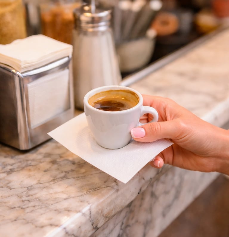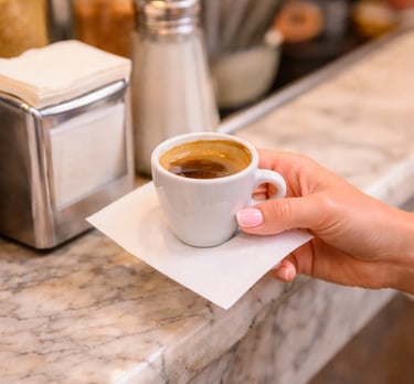 In Italy, coffee is often enjoyed quickly at the bar rather than at a table. These napkins are simply meant to give you a clean place to rest your cup or wipe a stray drip as you sip. They serve as a polite, practical touch — a sign of attention to detail in everyday life.